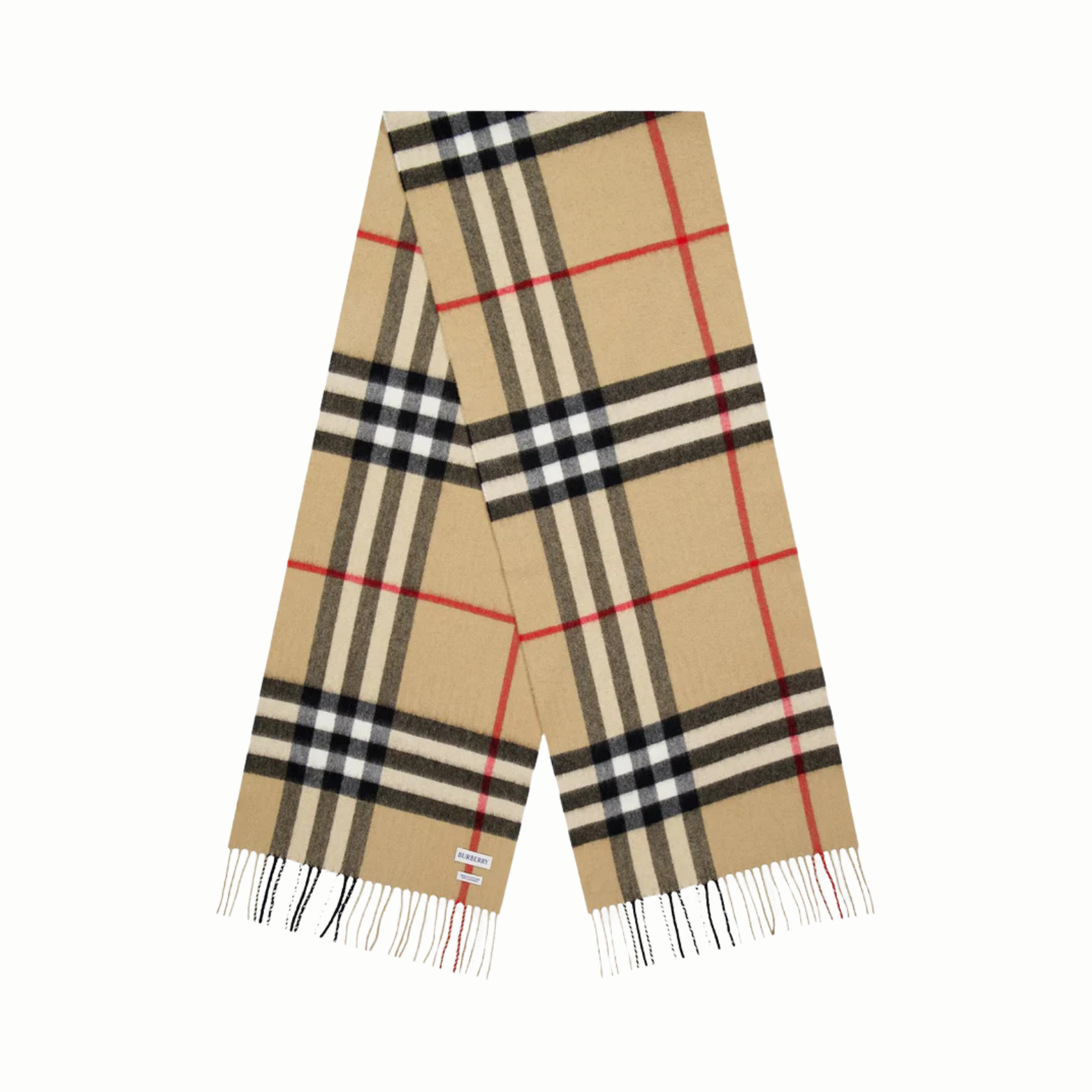 The Burberry Check Cashmere Scarf in beige is a timeless luxury accessory that embodies the brand’s heritage and craftsmanship. Expertly woven in Scotland from 100% cashmere, it boasts an ultra-soft and warm feel. The classic Burberry check pattern, in shades of beige, black, white, and red, adds a signature touch of elegance. Finished with delicate fringed edges, this versatile scarf effortlessly complements both casual and formal looks. A true wardrobe essential, it offers both style and comfort, making it a perfect statement piece for any season.