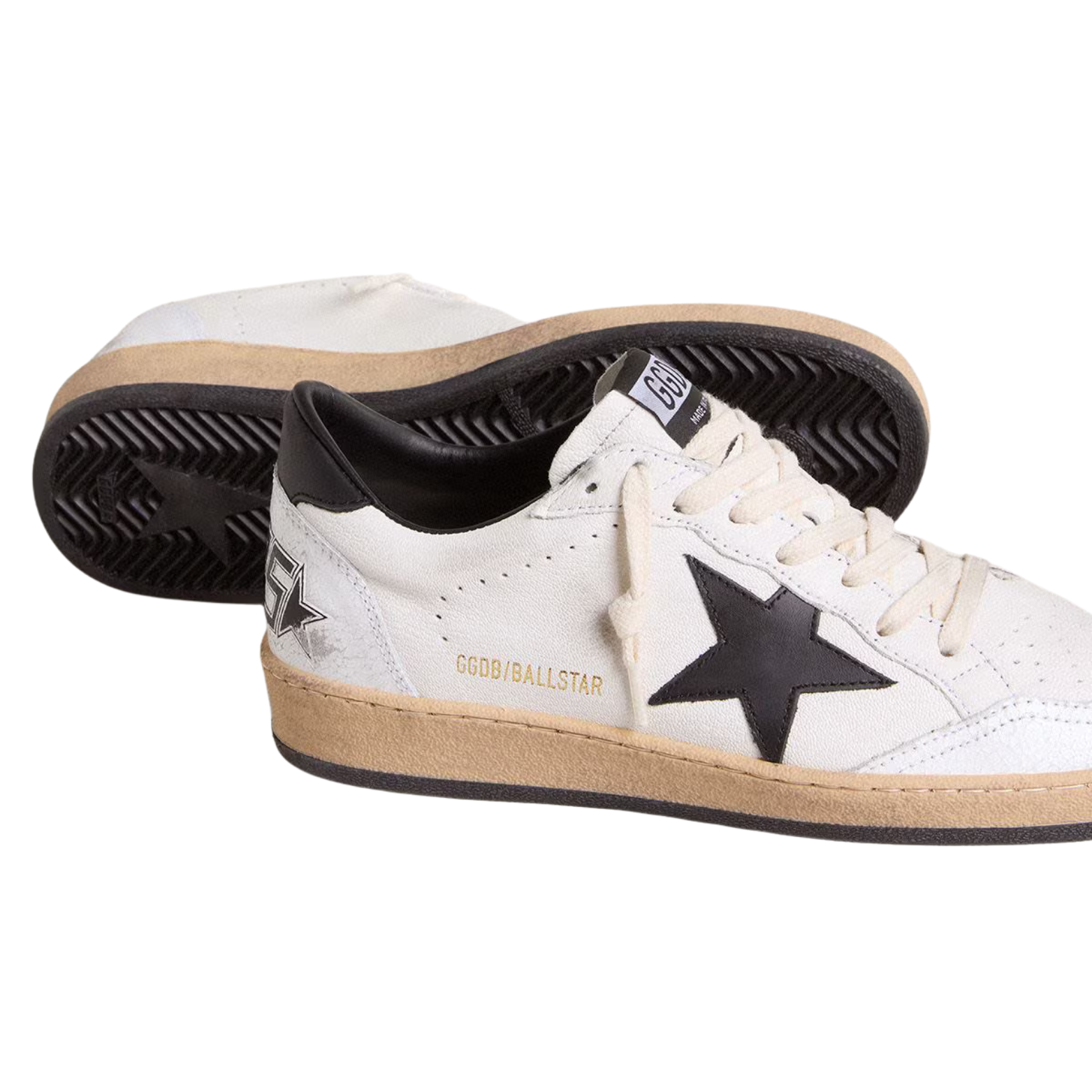 Inspired by the spirit of the Eighties, the Golden Goose Ball Star blends American college heritage with laid-back street style. Crafted in white nappa leather, this style features a black star, finished with signature details that give it a timeless, lived-in feel—proof that true style is forever.