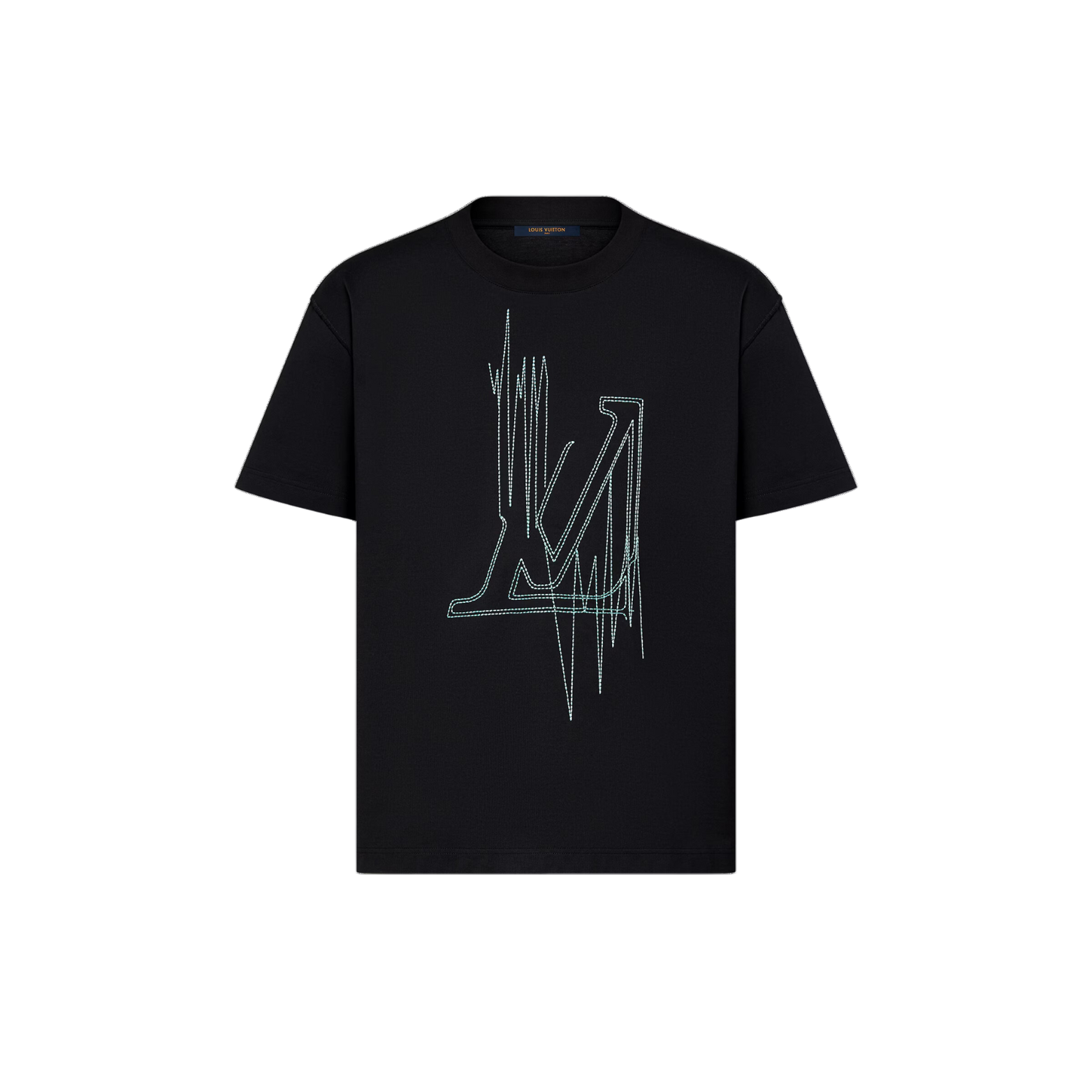 This smart black t-shirt features this collection’s LV Frequency motif, embroidered in a contrasting thread on the front and back, giving an effect that is simultaneously graphic yet delicate. This t-shirt has a classic Staples fit and is made from soft cotton jersey. An inside-out label on the back adds a distinctive finishing touch.